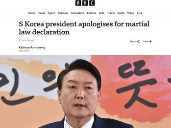 윤석열 대통령이 7일 비상계엄 사태와 관련, "매우 송구스럽게 생각하며 국민 여러분께 진심으로 사과드린다"고 첫 입장을 밝히자 외신들도 일제히 이를 긴급 타전했다.일본 언론은 윤 대통령의 대국민담화를 생중계하는 등 큰 관심을 보였다.로이터, AP, AFP통신 등 주요