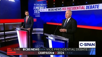 미국 민주당 부통령 후보인 팀 월즈 미네소타 주지사와 공화당 부통령 후보인 J.D. 밴스 상원의원(오하이오) 후보가 1일(현지시각) CBS TV토론에서 경제 문제를 두고 각각 카멀라 해리스 부통령, 도널드 전 대통령의 성과를 부각하면서 상대 대선 후보의 공약을 비판했다
