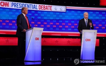 바이든-트럼프, 첫 TV토론…물병·펜·백지만 들고 90분간 '진검승부'