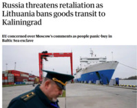 발트해에 위치한 인구 270만 명의 소국 리투아니아가 자국 영토를 경유해 칼리닌그라드로 가는 화물열차 운행을 금지했다.격분한 러시아는 불쾌한 심정을 노골적으로 드러내며 "대응조치가 따를 것"이라고 경고했다. 이에 따라 전쟁이 발트해까지 확대되는 것이 아니냐는 불안감이