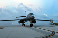 미 공군 전략폭격기 B-1B 편대가 괌 앤더슨기지에 배치됐다고 미 태평양공군사령부가 지난 23일 밝혔다. B-1B 편대는 괌 도착 전 일본 항공자위대와 대규모 훈련을 벌였다. B-1B 폭격기 4대 괌 배치… 도착 전 동해서 자위대와 훈련 '성조'지는 “미군 태평양공군사
