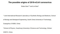 저자 샤오보타오 교수 실종설... ‘생물무기설’ 힘 실릴 듯