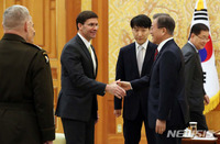 마크 에스퍼 미 국방장관이 방위비 분담금 협상과 관련, 주한미군 감축 가능성을 묻는 질문에 모호한 답변을 내놓아 파장이 일었다고 블룸버그통신과 로이터통신 등이 보도했다. 지난 19일 세 번째 한미 방위비 분담금 협상이 결렬된 뒤 나온 발언이다.