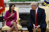 도널드 트럼프 미국 대통령이 북한을 비핵화 협상장으로 끌어들이고, 중국과 러시아를 대북제재에 동참시키기 위해 헨리 키신저 전 국무장관이 조언했던 ‘미치광이 전략(Madman Theory)’과 ‘역지사지 전략’을 사용했다고 니키 헤일리 전 유엔 주재 대사가 자신의 책에서