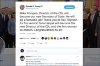 도널드 트럼프 美대통령이 렉스 틸러슨 美국무장관의 자리에 마이크 폼페오 美중앙정보국 국장을 내정할 예정이라고 밝혔다.