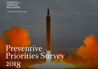 美외교관계협의회(CFR)가 자체 설문조사 결과 2018년 미국의 최대 안보 위협으로 ‘북한과의 전쟁’이 꼽혔다고 11일(현지시간) 홈페이지를 통해 밝혔다. 美CFR은 이날 홈페이지에 ‘2018 최우선 예방과제 8선’을 공개했다. CFR 산하 ‘예방행동센터’에서 회원 등