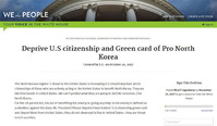 美백악관 청원 사이트로 유명한 ‘위 더 피플(We the People)’에 “미국에 거주하는 종북 세력들의 미국 시민권과 영주권을 박탈해 달라”는 청원이 올라왔다고 ‘미국의 소리(VOA)’ 방송이 7일 보도했다. ‘미국의 소리’ 방송은 “북한이 미국의 적으로 규정된 상