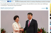 홍콩 반환 20주년 기념식에 참석하기 위해 현지에 간 시진핑 中국가주석이 ‘민주화’를 요구하는 홍콩 시민들에게 ‘레드 라인’을 넘지 말라고 경고해 세계의 이목을 끌었다. 홍콩 ‘사우스 차이나 모닝 포스트’에 따르면, 지난 1일(현지시간) 홍콩 반환 20주년 기념식에 참