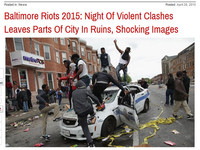 美동북부 메릴랜드州 볼티모어에서 흑인 폭동이 일어났다. 폭동으로 경찰 20여 명이 부상을 입었으며, 폭도 230여 명에 경찰에 체포된 상황이다. 메릴랜드州 정부는 볼티모어에 비상사태 및 통행금지령을 선포했다. 흑인들이 폭동을 일으킨 것은 지난 27일(현지시간)부터다.