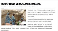 서아프리카 지역에서 발생한 에볼라 바이러스가 1,500km 이상 떨어져 있는 나이지리아에서도 발생하거니 이제는 동아프리카로 번지는 걸까? 세계보건기구(WHO)는 13일(현지시간), 동아프리카에 있는 케냐를 에볼라 발생 가능성이 매우 높은 ‘카테고리 2(에볼라 발생 위험