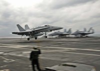 지난 8일(현지시간) 버락 오바마 美대통령의 ‘이라크 반군 IS에 대한 공습 승인’이 떨어졌다.몇 시간 뒤 걸프 연안에 대기 중이던 美해군 ‘조지 H.W 부시’ 항모강습단 소속 F/A-18C 수퍼 호넷 전투기 편대가 이라크 북부 전략거점인 아르빌 외곽 30km 지점까지