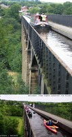 하늘에 떠가는 유람선이 포착됐다. 최근 한 온라인 커뮤니티 게시판에는 [하늘에 떠가는 유람선]이란 제목으로 사진이 올라왔다. 공개된 사진은 영국 웨일스 북동부에 위치한 폰트치실트 수도교의 모습이 담겨 있다. 사진 속 사람들은 다리의 수로에 카약을 타고 레포츠를 즐기고
