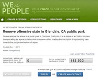 미국 캘리포니아주의 위안부 소녀상 철거를 요구하는 인터넷 청원이 10만명을 넘어섰다.일본 극우 세력의 조직적인 움직임으로 보이는 이번 청원 운동은 지난달 11일 텍사스주 이라는 한 네티즌에 의해 시작됐다.이 네티즌은 백악관 청원사이트 에 위안부 소녀상 철거를 요구하는