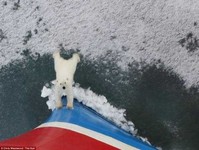 쇄빙선 밀어내는 북극곰 포착됐다. 7월 8일(한국시간) 영국의 한 외신은 북극 노르웨이령 스발바르제도에서 한 관광 쇄빙선이 유빙을 헤치고 나아가는 앞에 어린 북극곰 한 마리가 쇄빙선을 막아내는 모습이 카메라에 찍혔다고 전했다. 쇄빙선은 얼음이 덮여 있는 결빙해역에서 수