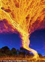 하늘에 불이라도 난 것처럼 불타는 거대 토네이도의 모습을 담은 놀라운 사진이 화제다.영국 데일리메일은 지난 7일(현지시간) 스페인의 사진작가 토마스 보고네즈가 촬영한 현란한 색상의 풍경사진을 공개했다.불타는 거대 토네이도가 하늘을 뒤덮고 있는 모습과 용암이 흐르거나