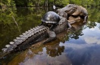 해외 인터넷에 거대한 ‘악어’ 등에 올라탄 ‘겁 없는 거북이’가 화제다.최근 야생전문 사진작가 맥 스톤은 미국 사우스 캐롤라이나의 습지대에서 수개월에 걸쳐 촬영한 사진을 언론을 통해 공개했다.눈길을 끈 사진은 악어 등에 올라타 마치 일광욕을 즐기듯 여유롭게 한낮의 햇