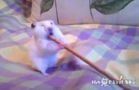 자기의 몸보다 몇 배나 긴 과자를 순식간에 먹어 치우는 ‘폭식 햄스터’가 화제다.유튜브에 올라온 영상 속의 햄스터는 침대 위에 놓인 긴 막대 과자를 발견하자 앞발로 꽉 잡고 입에 집어넣기 시작한다. 자신의 몸보다 훨씬 긴 이 과자가 사라지기까지 걸린 시간은 1분 미