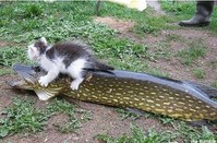 ‘용 사냥하는 고양이’ 게시물이 화제다. 최근 러시아 등 해외 온라인 커뮤니티에는 새끼 고양이가 물고기 위에 올라탄 모습을 촬영한 사진이 게재됐다. 공개된 사진에서 새끼 고양이가 자신보다 덩치가 훨씬 큰 물고기 위에 과감하게 올라타 있는 모습이 인상적이다. 새끼 고양이