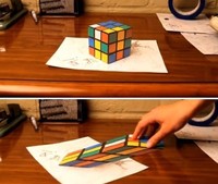 눈으로 직접 보고도 믿을 수 없는 놀라운 '3D 아트 작품'이 눈길을 끌고 있다.유튜브에 올라온 화제의 동영상은 약 2분 분량으로 운동화와 루빅큐브, 산업용 테이프 등을 이용한 '작품'이 등장한다. 이 작품들은 모두 종이 위에 얌전하게 놓여 있다. 운동화 등을 그저 종
