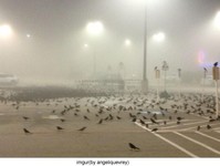 마치 알프레드 히치콕 감독이 연출한 ‘새’의 한 장면처럼 보이는 모습이 포착됐다.해외 인터넷 커뮤니티 사이트에 사진을 공개한 사람은 최근 미국 텍사스 휴스턴에 있는 한 식료품점의 주차장에서 이 같은 모습을 포착하고 사진에 담았다고 전했다. 안개 낀 주차장에 몰려든 까마
