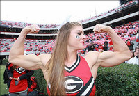 '왕근육 치어리더'가 화제다.최근 한 해외 온라인 커뮤니티에는 미국 조지아대학교에서 치어리더로 활동하고 있는 ‘왕근육 치어리더’의 사진이 게재됐다.사진 속 '왕근육 치어리더' 안나 왓슨은 두 팔을 들어올리며 굵고 탄력있는 근육질 몸매를 자랑하고 있다.특히 안나 왓슨의