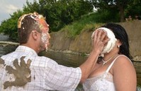과격한 신혼부부 사진들이 공개돼 화제다.사진 속 부부는 부인이 남편을 향해 쇠파이프로 폭행을 가하고 있으며, 서로의 얼굴에 케잌을 가득 묻히거나 도로에 누워 키스를 하는 등의 과격한 모습들로 눈길을 끌고 있다.특히 신혼의 단꿈을 즐길 것만 같은 신랑 신부가 터프하고도