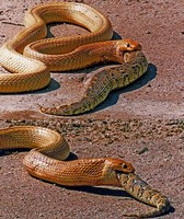 독사를 한 입에 삼키는 코브라의 모습이 포착돼 화제다.영국의 더 선은 지난 6일(현지시각) "사진작가 파이어트 헤이번스가 남아프리카 칼라가디 초국경공원(Kgalagadi Transfrontier National Park)에서 코브라가 자신과 몸집이 비슷한 뱀 한 마리를