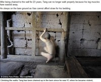아들을 벌거벗겨 쇠사슬로 묶어놓은 채 23년 동안 창고에서 양육할 수밖에 없었던 한 노모의 안타까운 사연이 공개됐다.최근 영국 [데일리메일]은 “올해로 76세인 샤오안롱씨는 정신지체를 앓고 있는 자신의 친아들 탕쭈화(40)를 자신의 집 헛간에 체인으로 묶어 23년 동안