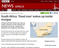 사망선고를 받고 시체보관소에서 안치됐던 한 남성이 하루 만에 관을 열고 벌떡 일어섰다. 이에 해당 시체보관소 직원들은 “귀신이 나타났다”며 한바탕 큰 소동을 벌였다. 25일(현지시각) 영국 은 “남아공 이스턴 케이프에 사는 한 50살 남성이 시체보관소에 24시간 가깝게