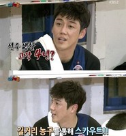 김혁의 공중부양을 연상케 하는 놀라운 점프력이 포착됐다 KBS 2TV 은 농구팀의 새로운 바스켓맨으로 그간 베일에 가려졌던 김혁의 훈련 모습을 공개했다. 이로써 농구팀은 강호동, 최강창민, 박진영, 존박, 줄리엔 강, 서지석, 이혜정, 이정진에 이어 김혁까지 전력을