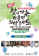 대한가수협회(회장 이자연)가 주최하는 '2021 찾아가는 전 국민 희망콘서트'가 오는 22일 오후 4시 부천 복사골(문화센터 아트홀)로 찾아간다.개그맨 김종국이 사회를 맡은 이번 공연은 가요계 전설들의 향연이다.'밤안개'의 전설 현미, '밤차'의 디스코여왕 이은하, 인