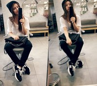 수지 사복 패션이 시선을 사로잡았다. 미쓰에이 수지는 27일 자신의 트위터에 “:( WHAT?”이라는 짧은 글과 함께 두 장의 사진을 게재했다. 공개된 사진 속 수지는 의자에 앉아 거울에 비친 자신의 모습을 바라보며 셀카를 찍고 있다. 특히, 흰색 티셔츠에 검정색 비니