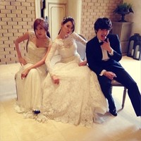손담비(30)와 가희(33)가 순백의 웨딩드레스 입었다. 손담비는 23일 자신의 트위터를 통해 “본방사수”라는 짤막한 글과 함께 한 장의 사진을 게재했다. 공개된 사진은 MBC뮤직 의 촬영장에서 찍은 것. 사진 속 손담비와 가희는 웨딩드레스를, 손호영은 턱시도를 입은