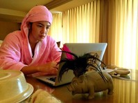 배우 장근석이 핑크색 샤워가운 인증샷을 공개했다. 장근석은 18일 오후 자신의 트위터에 “자도 자도 졸리지만 잘 수가 없다. 시간 아까워. 아 새디스트여”라는 글과 함께 한 장의 사진을 올렸다.공개된 사진 속 장근석은 샤워가운을 입은 채 노트북 화면을 진지하게 응시하고