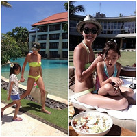 탤런트 변정수가 비키니를 입은 사진을 공개했다.변정수는 29일 자신의 미투데이를 통해 "가끔 가족과 떠나는 여행 쉽지 않다"라는 글과 함께 여러 장의 사진을 게재했다.공개된 사진 속 변정수는 형광색 비키니를 입고 아이와 함께 즐거운 시간을 보내고 있다.변정수는 늘씬하고