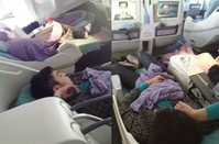 그룹 빅뱅의 멤버 탑 숙면 사진이 화제다.최근 한 온라인 커뮤니티 게시판에는 '중국 팬이 찍은 탑의 숙면 보습'의 제목으로 한 장의 사진이 게재됐다.사진 속 탑은 보라색 담요를 덮은 채 녹색 니트와 재킷으로 패셔니스타 다운 센스를 뽐냈다.비지니스석에 누워도 살짝 접히