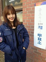 '미수다' 출신 라리사가 19일 오전 10시45분쯤 용산구 한남도 제4투표소에서 한국 국적 취득 후 첫 '참정권'을 행사했다. 라리사는 최근 [교수와여제자3]공연장에서 동료배우들과 함께 "18대 대통령 선거의 투표율이 75%를 넘으면 대학로에서 알몸으로 말춤을 추겠다"