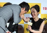 17일 오전 서울 동대문 메가박스에서 영화 '박수건달'(감독 조진규) 기자간담회가 열렸다. 간담회에 참석한 김정태는 영화 찍으면서 힘들었던 점과 미안했던 점에 대해 얘기했다. 사실 제가 영화 찍으면서 허리가 무척 안 좋았는데, 액션 연기를 하면서 디스크가 터졌다. 정말
