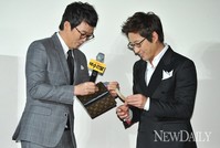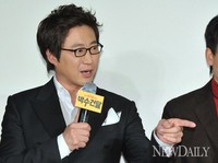 17일 오전 서울 동대문 메가박스에서 영화 '박수건달' 기자간담회가 열렸다. 이날은 독특하게 간담회에서는 흔히 볼 수 없는 고사상이 차려졌다. 무당을 소재로 다루는 만큼 '박수건달'의 대박을 기원하기 위해 고사를 지냈다. 김정태가 돼지 코에 오만원짜리를 꼽자 박신양도