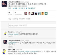 가요계 대표 ‘섹시퀸’이자 절친인 엄정화와 이효리가 대선을 앞두고 투표 패션 대결을 예고했다. 엄정화는 지난 12일 자신의 트위터에 “부산에서 촬영 중인데 우리 영화팀은 내일 부재자 투표해요. 우리 꼭! 투표해요!”라며“전 서울에서 투표할거에요! 투표. 투표! 투표.