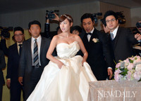 '하하'의 신부 '별'이 아름다운 순백의 드레스를 입고 등장해 사람들의 시선을 사로잡았다.30일 63빌딩 그랜드볼룸에서 '하하-별 결혼식'을 공식 발표하는 기자간담회가 열렸다. '별'은 가장 특별한 날인만큼 러블리하면서 우아한 드레스를 선택했다. 그녀가 선택한 드레스는