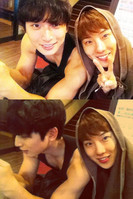 2AM 조권이 진운의 팔근육을 공개해 화제다.지난 28일 조권은 자신의 트위터를 통해 "진운이랑 온천가요"라는 짧은 글과 함께 두 장의 사진을 게재했다.공개된 사진 속에서 조권과 진운은 나란히 어깨를 맞대고 카메라를 응시하고 있다. 사진 속 조권은 후드티 모자를 쓰고