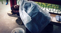 배우 김희선이 야외에서 잠이 든 사진이 공개돼 화제다.16일 김희선의 소속사 힌지엔터테인먼트는 드라마 야외 촬영 중 한 구석에서 피곤한 듯 쪽잠을 청하고 있는 김희선의 모습을 공개했다. 공개된 사진 속 김희선은 통나무 벤치 위에 누워 옷을 베고 우비를 이불 대신으로