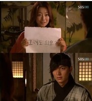 드라마 '신의'가 한글날에 맞춤법이 틀리는 실수를 해 시청자들에게 비난을 사고 있다.지난 9일에 방송된 SBS 드라마 '신의'에는 최영(이민호)을 위로하기 위해 유은수(김희선)가 스케치북 고백을 하는 장면이 전파를 탔다. 이 날 유은수는 영화 '러브액츄얼리'의 프러포