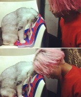 분홍머리를 한 지드래곤의 사진이 화제다.그룹 빅뱅의 지드래곤은 지난 6일 자신의 트위터에 "영 끝. 피날레를 얘랑 하는 구나" 라는 짧은 글과 함께 사진을 게재했다.사진 속 지드래곤은 아무나 소화하기 힘든 분홍색 머리카락을 하고 고양이와 눈높이를 맞추고 있다. 자칫 촌