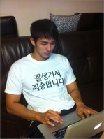 2AM의 임슬옹이 입은 독특한 티셔츠가 화제 선상에 올랐다.지난 18일 2AM의 정진운은 자신의 트위터에 "ㅋㅋㅋ"라는 짧은 글과 함께 한 장의 사진을 올려 네티즌들의 시선을 끌었다. 공개된 사진에서 임슬옹은 트레이닝 바지에 흰색 티를 입고 소파에 앉아 노트북을 보고