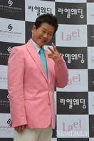 15일 서울 소망교회에서 열린 가수 유열의 결혼식. 선배 태진아가 분홍색 상의를 입고 깜찍한 포즈를 취하고 있다. 이날 태진아는 스타 하객들 중 가장 먼저 포토홀을 찾았다.…