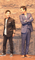 29일 서울 강남구 파인트리 라운지에서 열린 TV조선 주말 코믹드라마 ‘지운수대통’ 기자간담회에 참석한 이문식(왼쪽)과 임창정이 포즈를 취하고 있다. 두 사람은 "누가 더 크냐"고 취재진들에게 질문을 하면서 박장대소했다. 임창정은 "형보다 내가 더 크다"면서 "제가 더