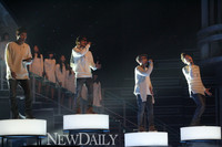 28일 밤 서울 경희대학교 평화의전당에서 Mnet '슈퍼스타K3' 다섯 번째 생방송이 진행된 가운데 울랄라세션이 이승철의 ‘서쪽하늘’로 공연을 하고 있다.이날 방송은 ‘TOP4’ 네 팀(투개월, 크리스티나, 버스커버스커, 울랄라세션)이 ‘심사위원 명곡 미션’으로 화려한