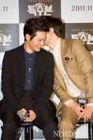 26일 오전 서울 롯데시네마 건대입구점에서 영화 ‘특수본’의 제작보고회 및 기자간담회가 열린 가운데 배우 주원과 김정태가 참석했다.‘특수본’은 동물적 감각의 강력계 형사 성범(엄태웅 분)은 잠복근무 중, 잔인하게 살해된 동료경찰의 살인사건을 맡는다. 본능적으로 단순 사